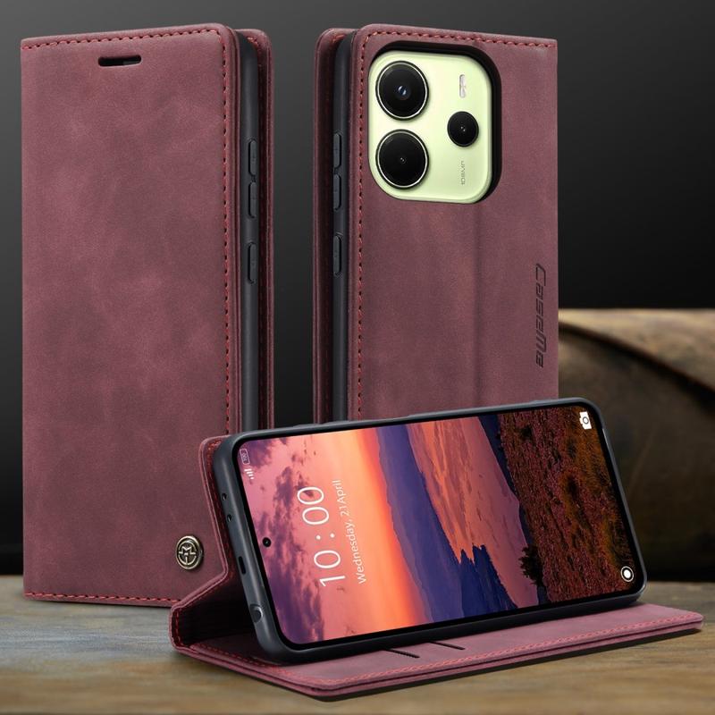 Xiaomi Redmi Note 14 4G Caseme 013 Series Wallet Case - Wine Red