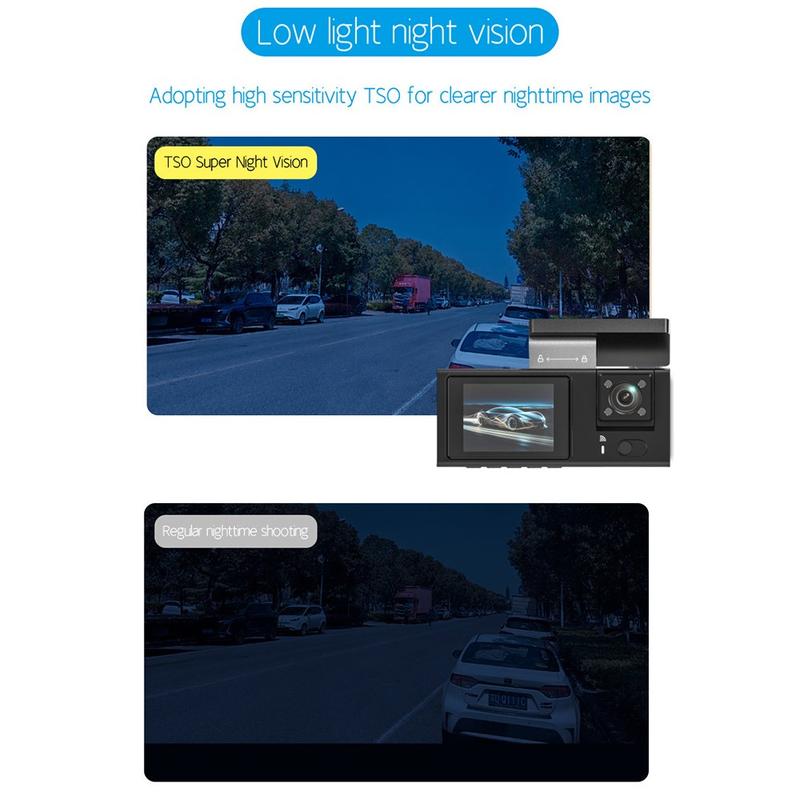 The Y08 triple-lens dash cam provides full-vehicle monitoring with three high-definition cameras capturing the road ahead, the cabin interior, and the rear view simultaneously. The front camera records in crisp 4K clarity, while the 720P interior and rear lenses ensure wide coverage for daily driving, ride-sharing, family vehicles and parked-car security.