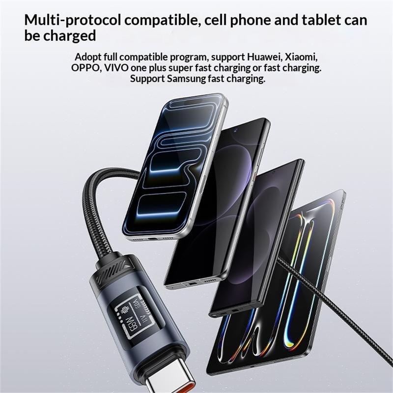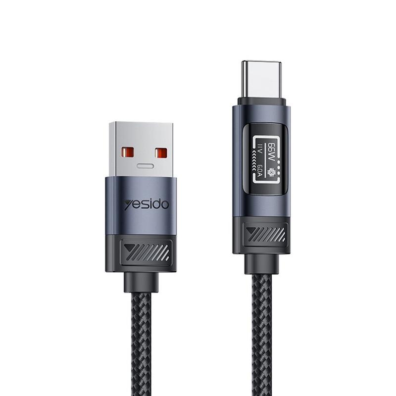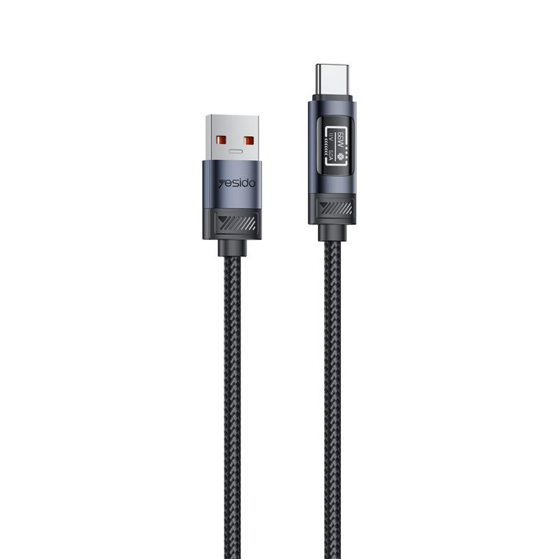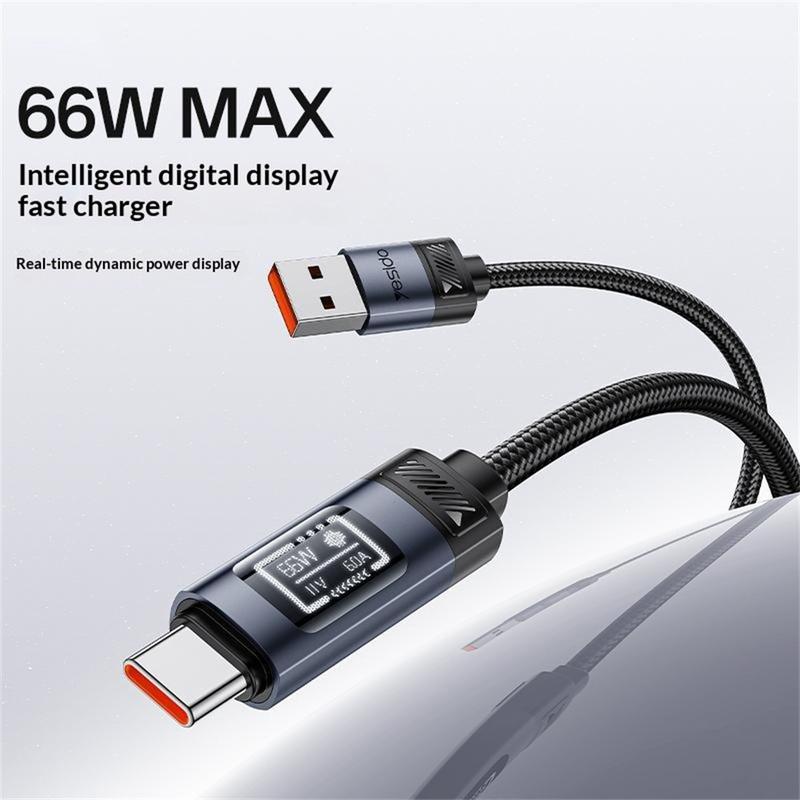 • Yesido CA138C 66W Fast Charging Cable - USB-A to USB-C Nylon Braided Data Cable with OLED Digital Display - 1.2m