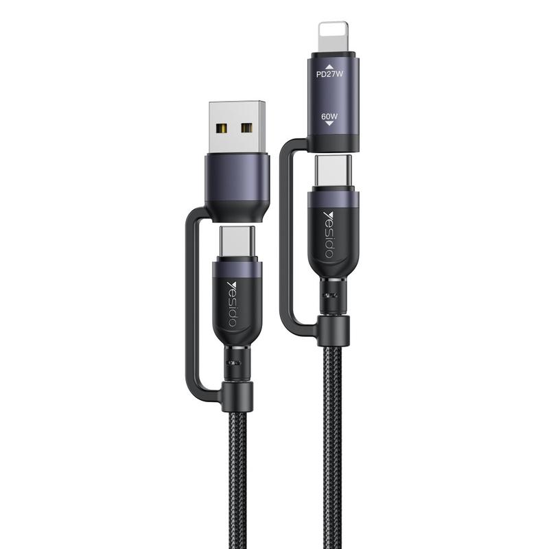 Yesido CA200 4-in-1 Charging Cable - USB-A/USB-C to USB-C/Lightning - Black