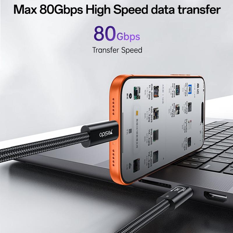 With support for up to 80Gbps transmission speed, the Yesido CA211 is suitable for fast file transfer, data backup, and efficient syncing of large files. It also supports up to 240W charging, helping compatible devices charge with high power delivery when paired with a suitable charger and supported hardware. For display use, the cable supports video transmission up to 16K@60Hz, making it a strong option for advanced visual setups and high-resolution external displays.
