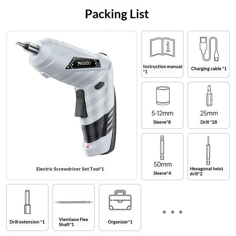 Yesido EC34 Cordless Electric Screwdriver Kit with LED Light