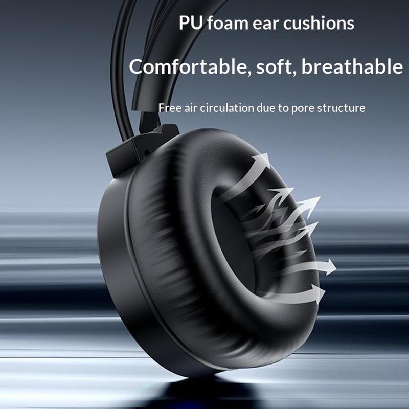 YESIDO EK06 is built with comfort in mind for longer periods of use. The self-adjusting headband uses a micro-elastic decompression design that adapts to different head shapes, helping reduce pressure during extended gaming sessions. Soft PU foam ear cushions with a breathable porous structure support airflow and help improve comfort, making the headset easier to wear for longer stretches of gaming, chatting, or media use.
