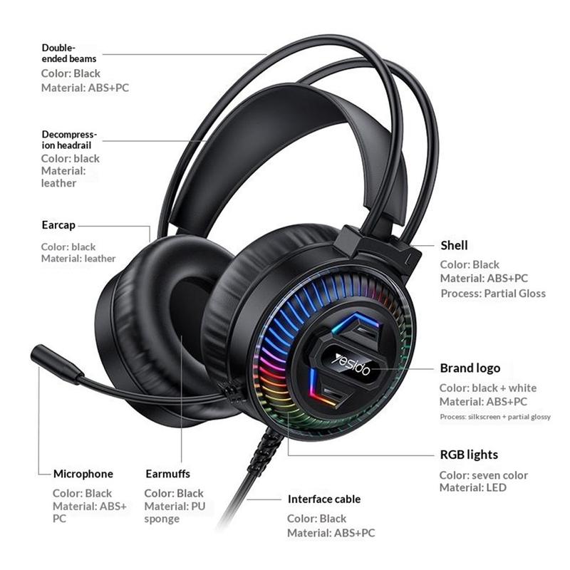 Yesido EK06 Wired RGB Gaming Headset - Black