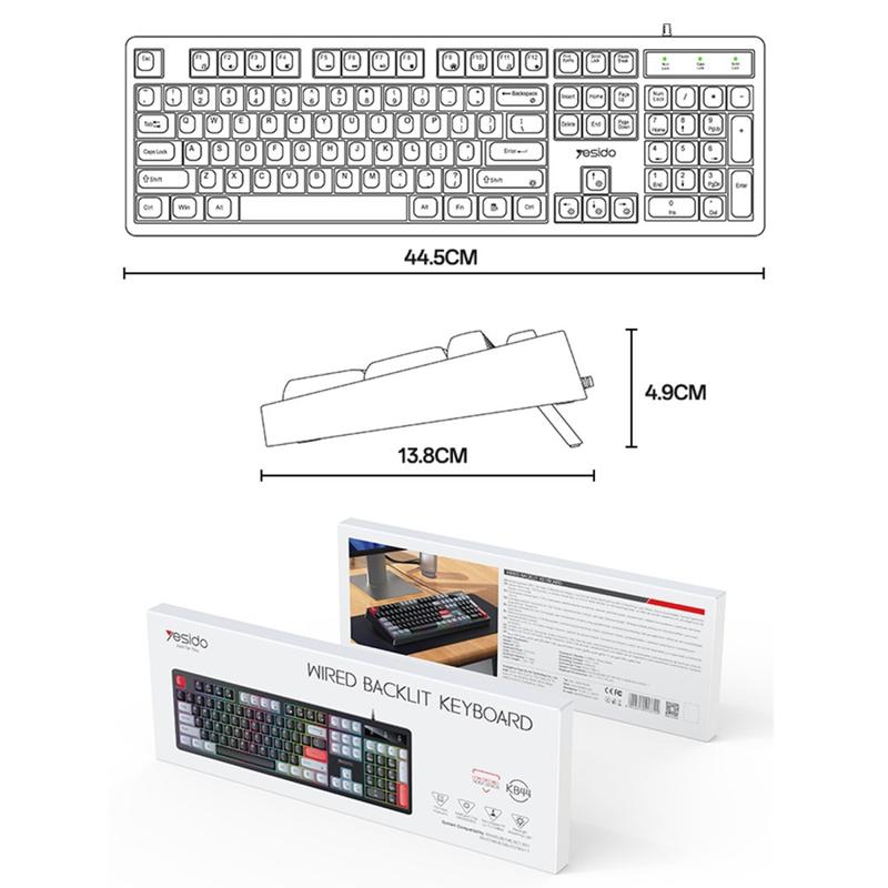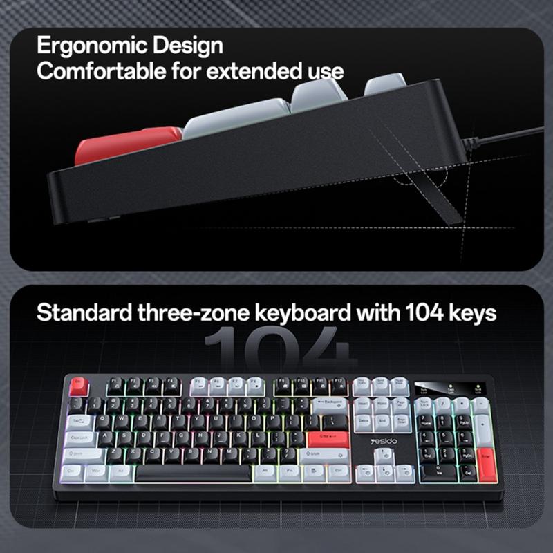 Yesido KB44 Wired Keyboard - 104 Keys RGB Backlight Low-Noise Mechanical Keyboard - English Layout - QWERTY