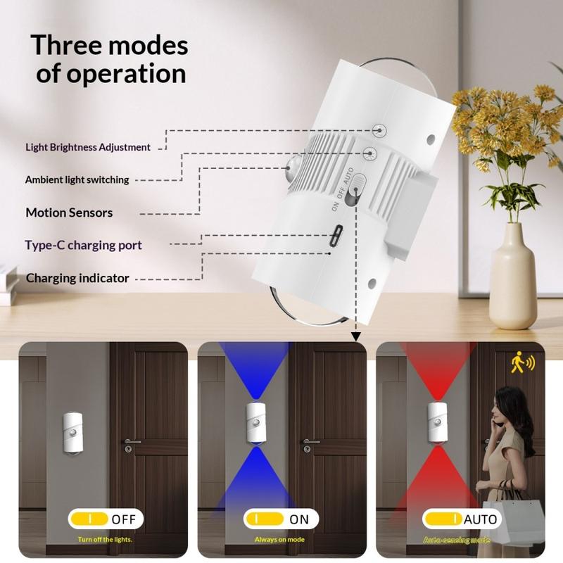 Motion sensor night lights are popular because they improve convenience at night without needing a main room light. Rechargeable magnetic models are especially practical because they can be installed easily in different places and moved when needed. RGB versions also add extra versatility by combining functional lighting with a more decorative mood-light effect.