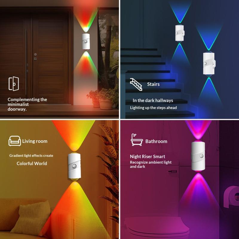 Add practical lighting and a soft decorative touch to your home with the YSJ-008A RGB smart motion sensor night light. Designed for hallways, bedrooms, closets, bathrooms, and entryways, this compact wall light combines automatic motion sensing, adjustable brightness, and colourful RGB lighting effects in one convenient rechargeable unit.