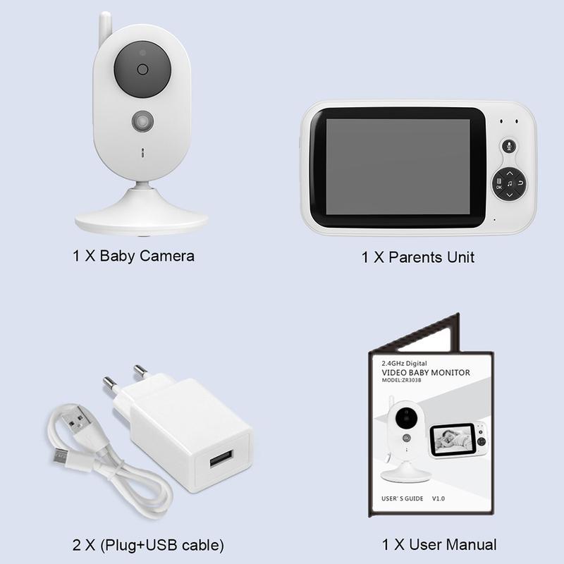 ZR303B Baby Monitor with 3.2-inch LCD, 2.4GHz FHSS, Two-Way Audio, Night Vision and Temperature Alert
